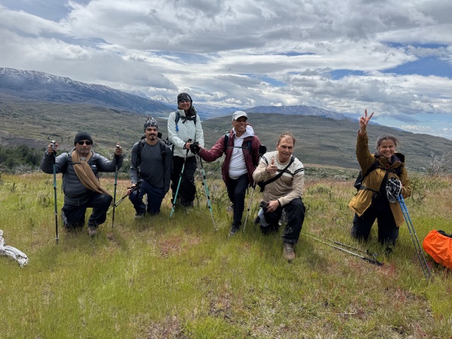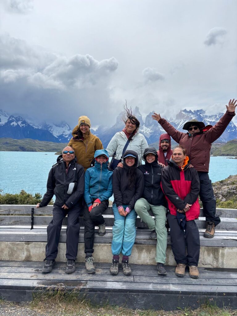 On 10th December 2026, we went to Patagonia. It was our whole EBC group with an addition of Bharat Bhai, Kinjals dad for first 10 days of hiking and then he would go back and be replaced by Fenil who would join us from Punta Arenas, Chile to Argentina. It was exciting. We had a tour with James from Uni Raymi travels through Tour Radar. We had lots of calls with James and were ready to start.